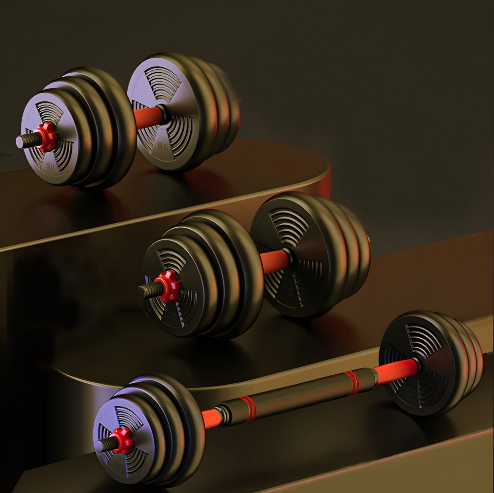 - Multi-Functional Design: Effortlessly convert from dumbbells (5.5 lbs–22 lbs each) to a full barbell (44 lbs / 20 kg max) for a wide range of training styles.
