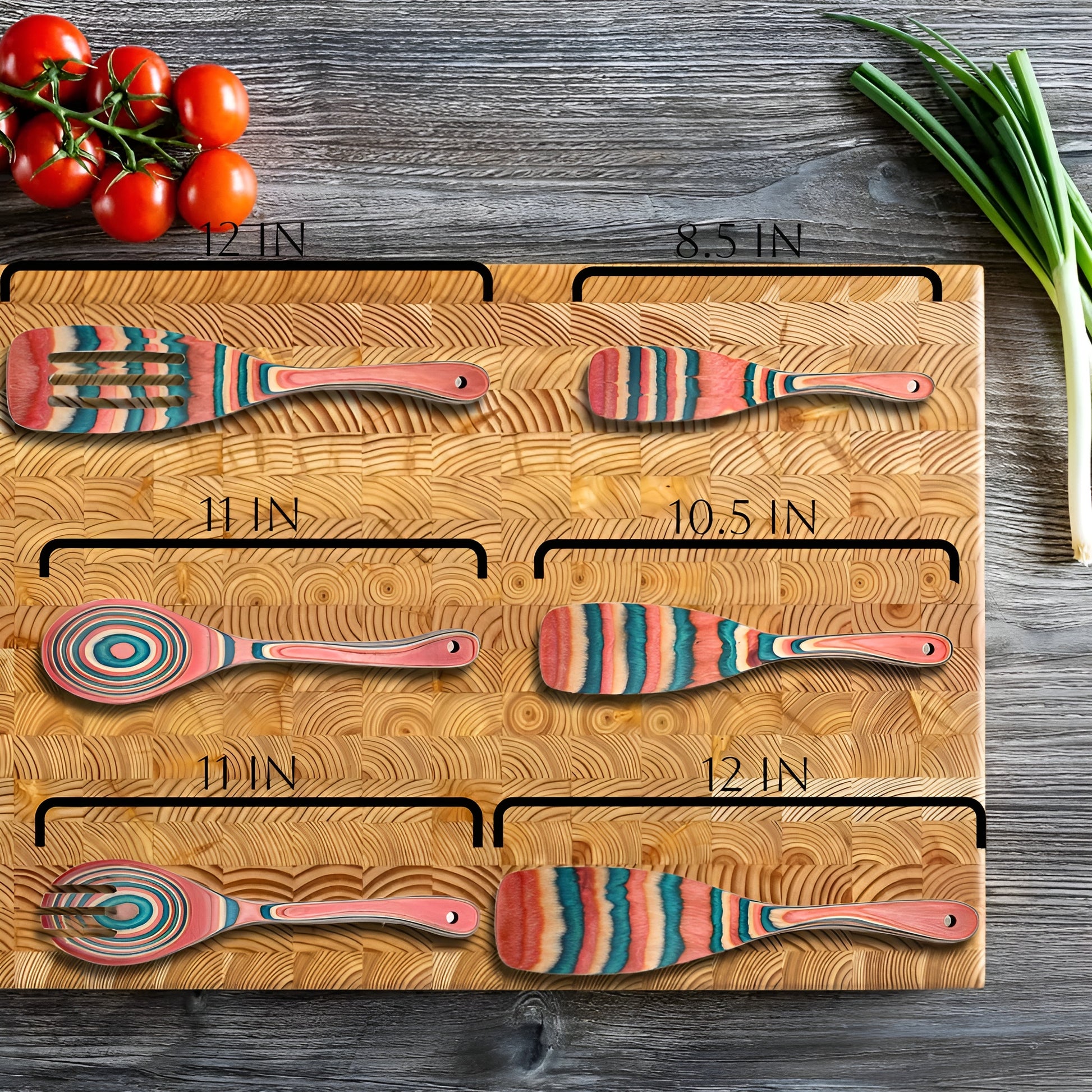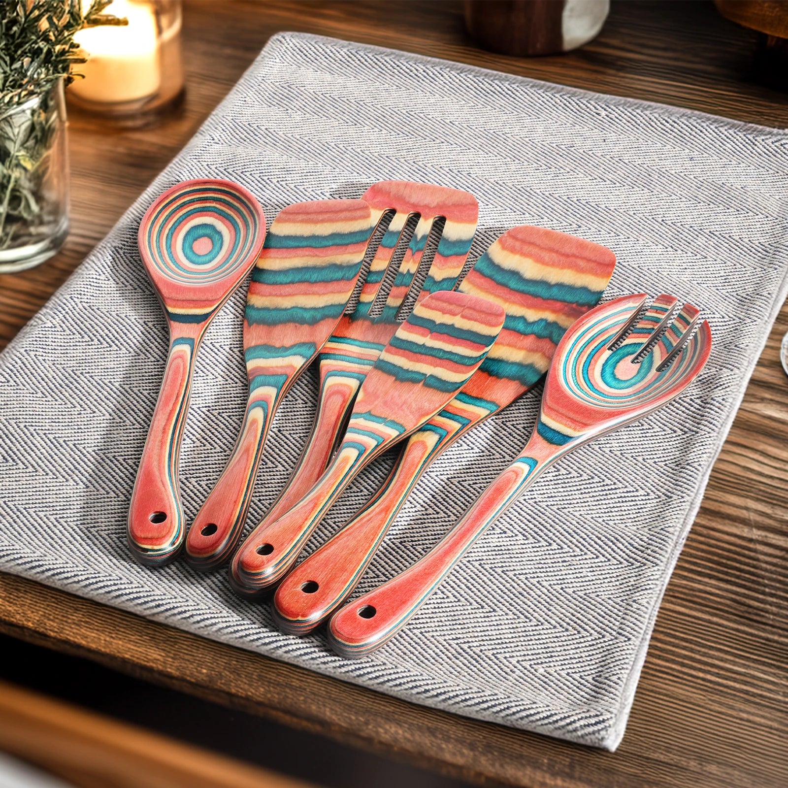 6-Piece Wooden Cooking Utensils Set – Eco-Friendly Pakkawood Spoons, Forks & Knives