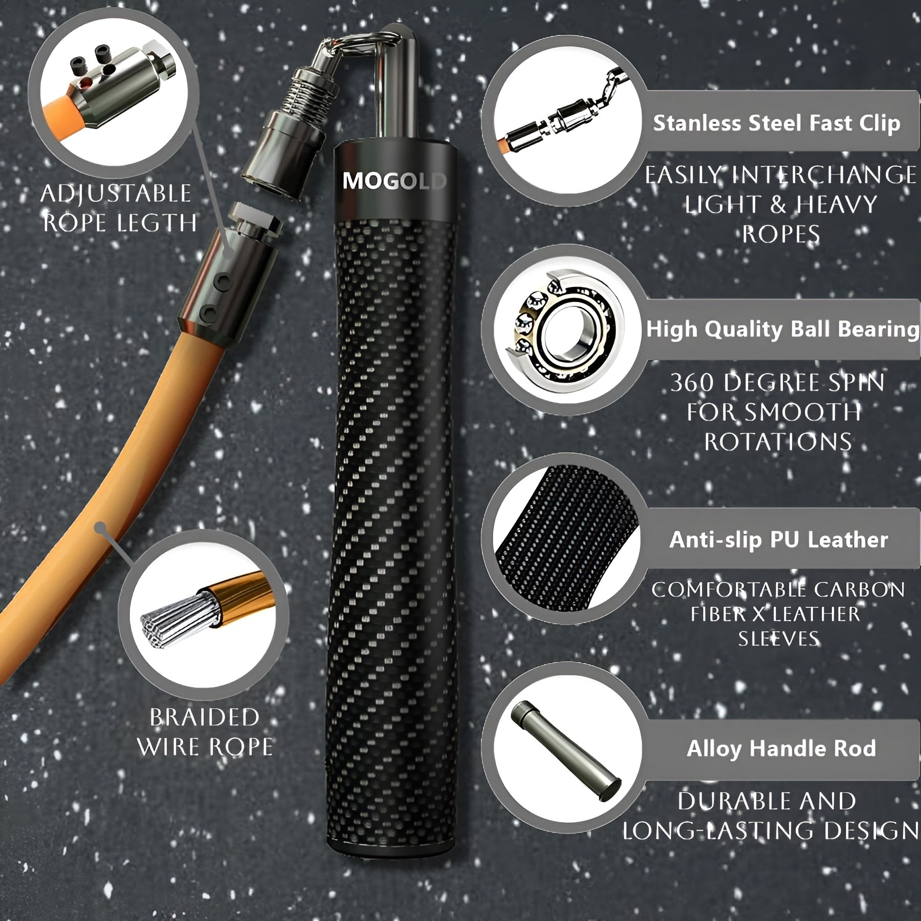 Premium Adjustable-Weight Jump Rope – 360° Spin | Interchangeable 1/5lb, 1/4lb, 1/2lb Cables